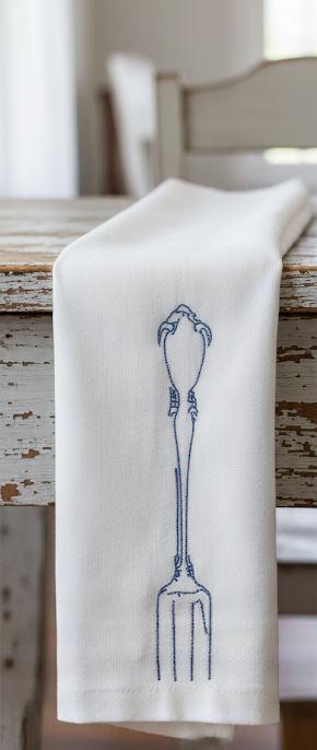 Add a touch of vintage charm to your linens with this Fork sketch embroidery design. Perfect for napkins, table runners, tea towels, and aprons, this one-line style fork brings a refined minimalist aesthetic to your home. Its fine linework stitches smoothly and looks beautiful in classic navy, gray, or metallic thread.