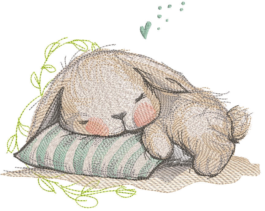 This Sleeping Easter Bunny free embroidery design features an adorable bunny peacefully resting on a soft pillow, stitched in delicate pastel tones. The design combines smooth satin stitches and soft tatami fills, creating beautiful texture and a gentle handmade look. Perfect for decorating towels, baby blankets, nursery items, and Easter gifts, this charming design adds a cozy spring touch to any embroidery project. Ideal for baby-themed and seasonal embroidery creations. ๐Ÿฐ๐Ÿงต๐ŸŒฟ