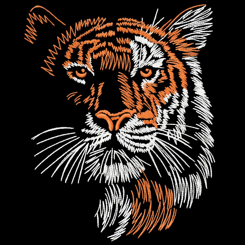 Tiger Black Background free embroidery design showcases a striking tiger portrait created with dynamic sketch-style stitching and bold contrast threads. Designed specifically to stand out on dark fabrics, this wildlife embroidery file is perfect for tote bags, hoodies, jackets, and decorative projects. Balanced stitch density ensures smooth embroidery while delivering dramatic visual impact and modern artistic style.
