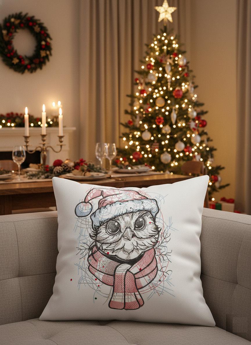 From Santa owl with knitted scarf embroidery design to elegant snowflakes and reindeer silhouettes, machine embroidery transforms ordinary cushions into collectible pieces that sell quickly in December.