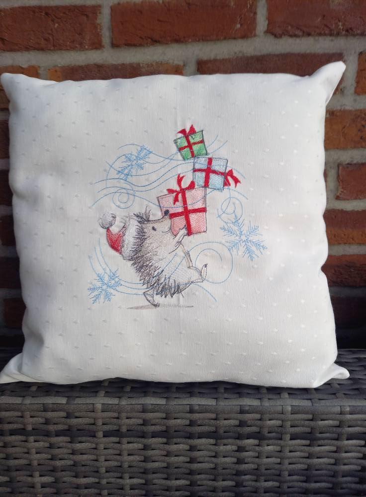 🦔 Case Study: Hedgehog Is Bringing Christmas Gifts Embroidery Design