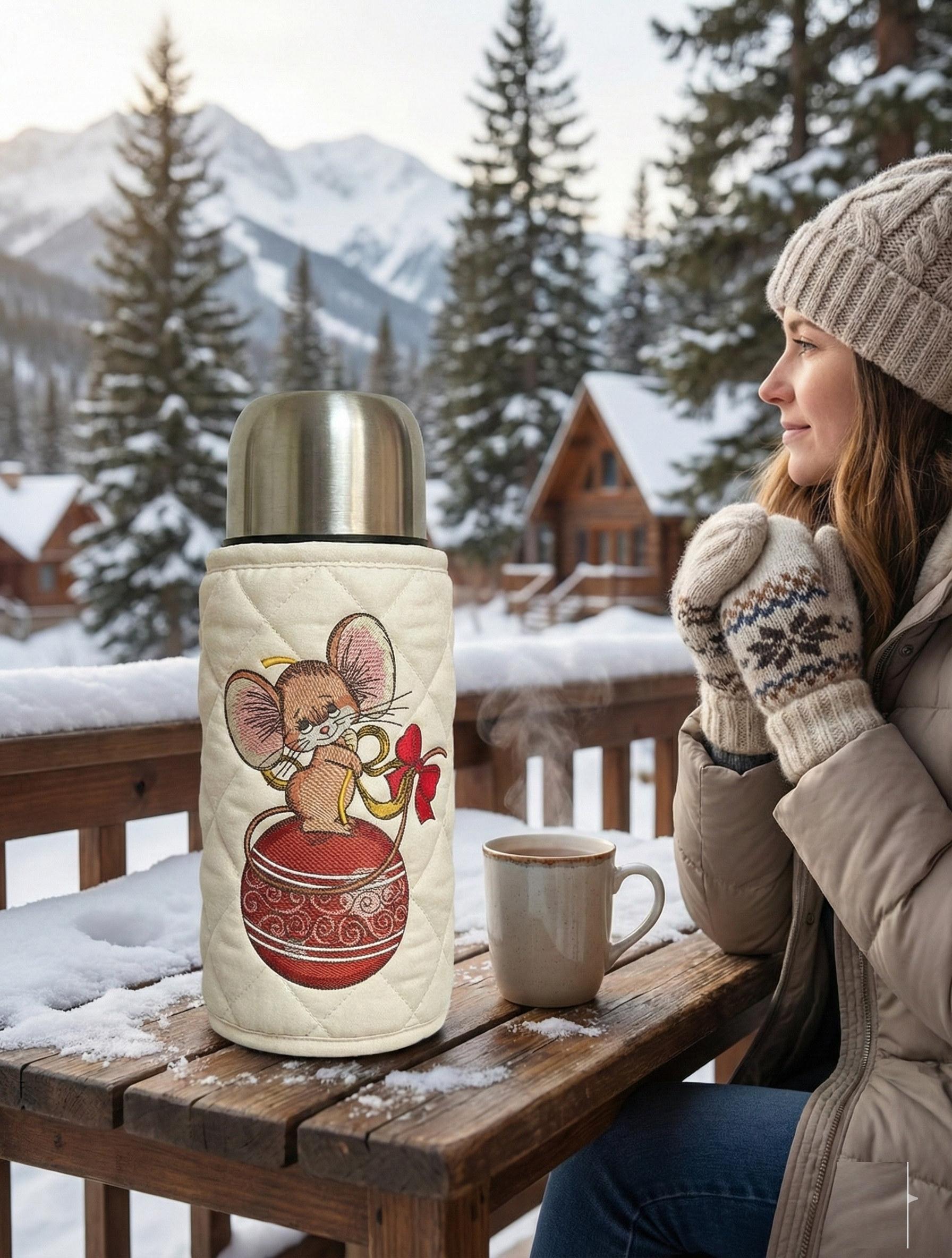Cozy Thermos Cover with Embroidery 🐭❄️