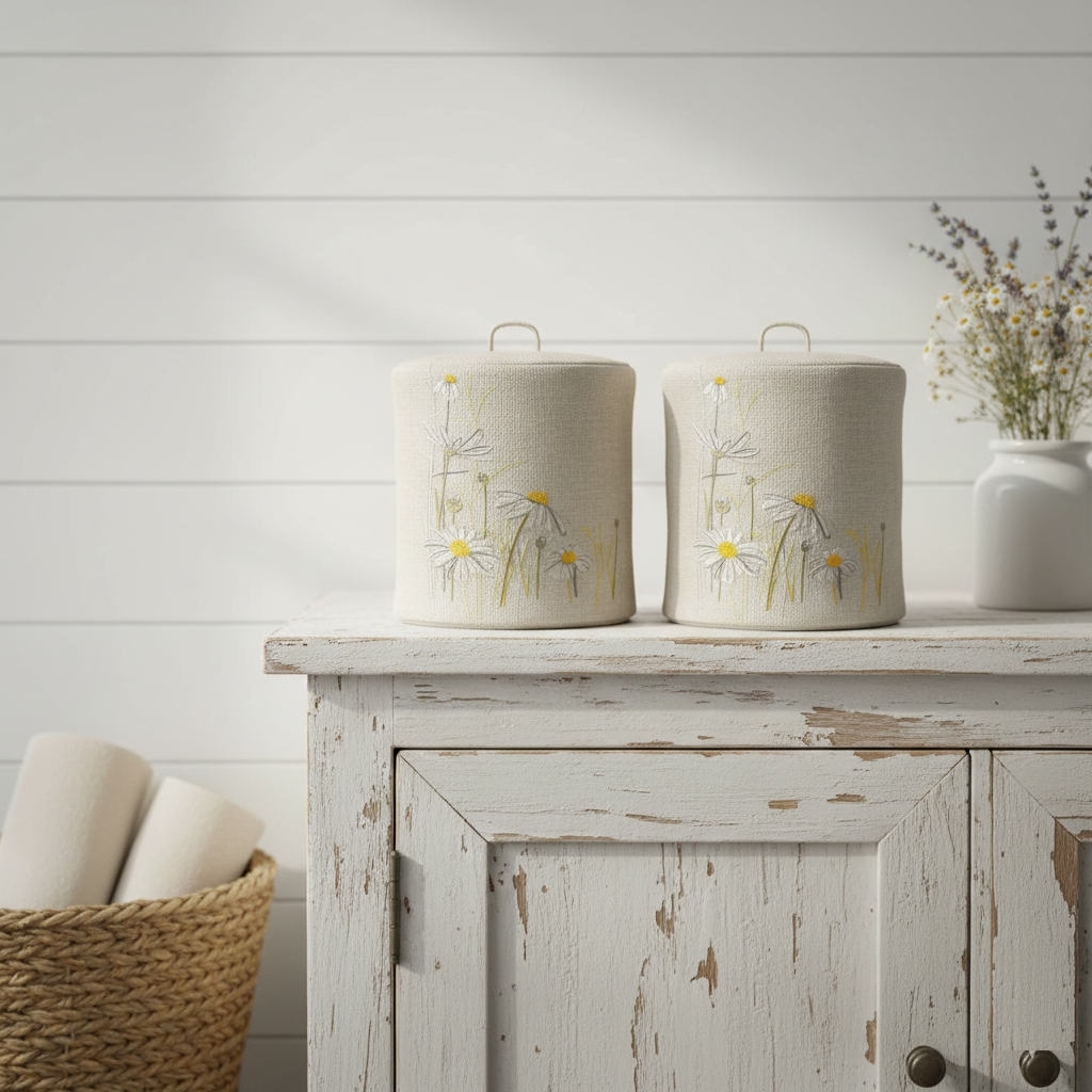 Chamomile meadow embroidery design has the power to transform even the simplest bathroom into a soft, inviting sanctuary.